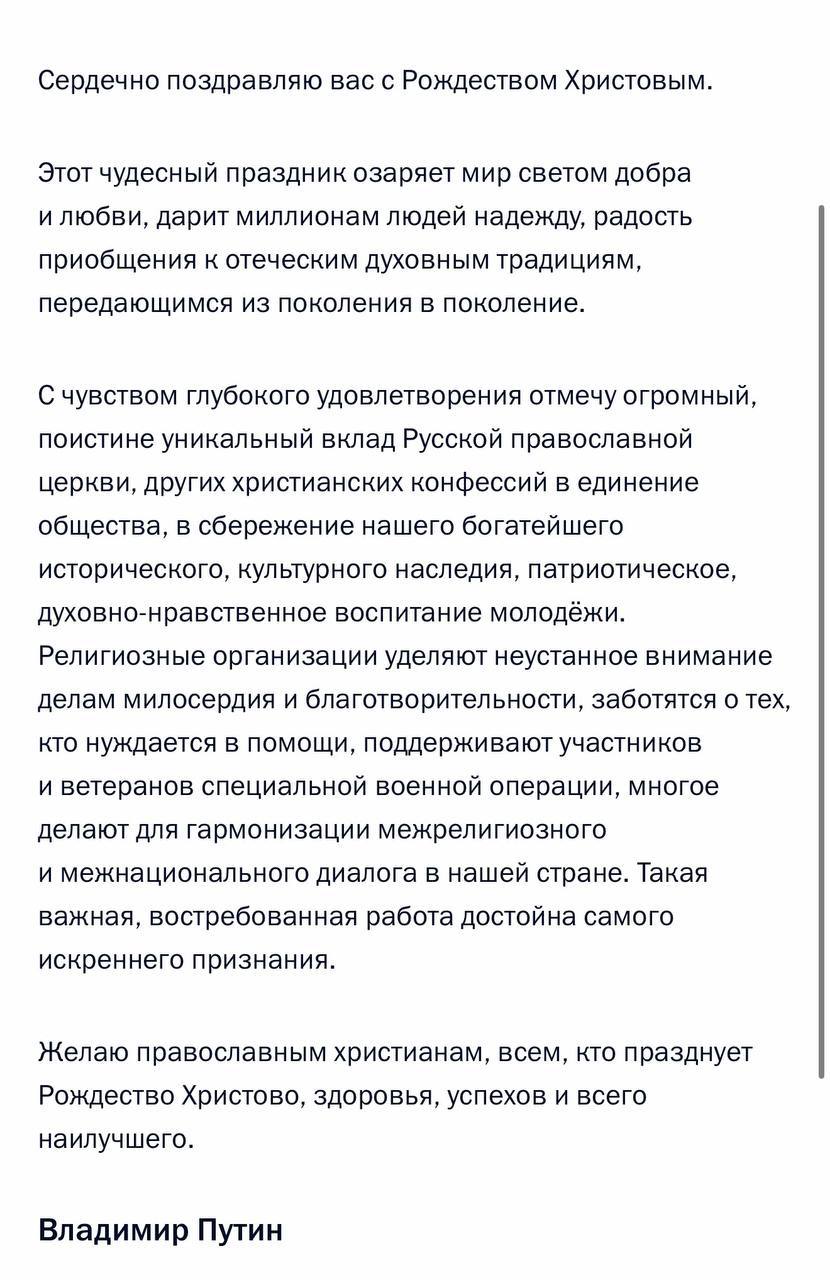 "Желаю православным христианам, всем, кто празднует Рождество Христово, здоровья, успехов и всего наилучшего", — подчеркнул президент.