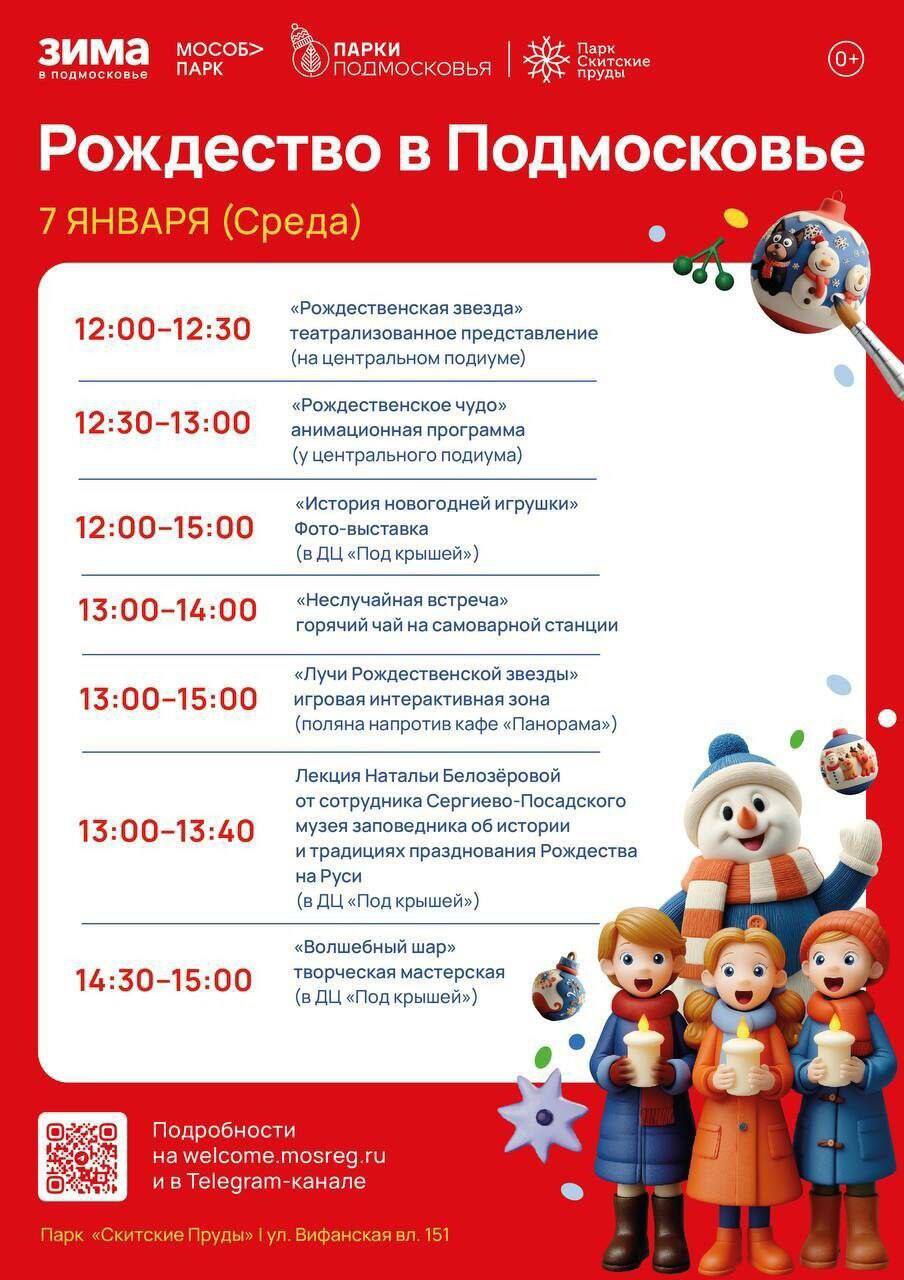 Сегодня в парке «Скитские пруды» пройдёт праздник «Рождество в Подмосковье»!