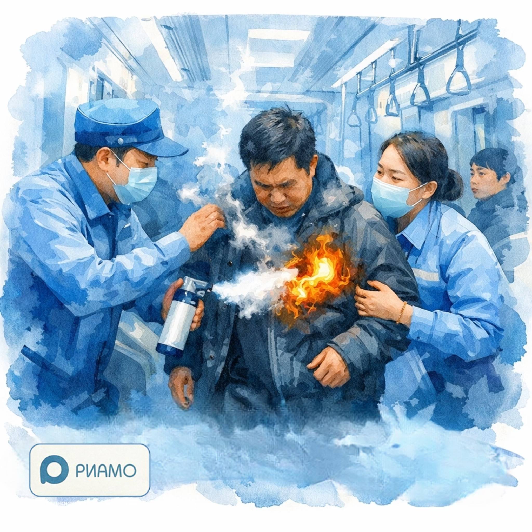 В метро Шанхая у пассажира загорелся пауэрбанк