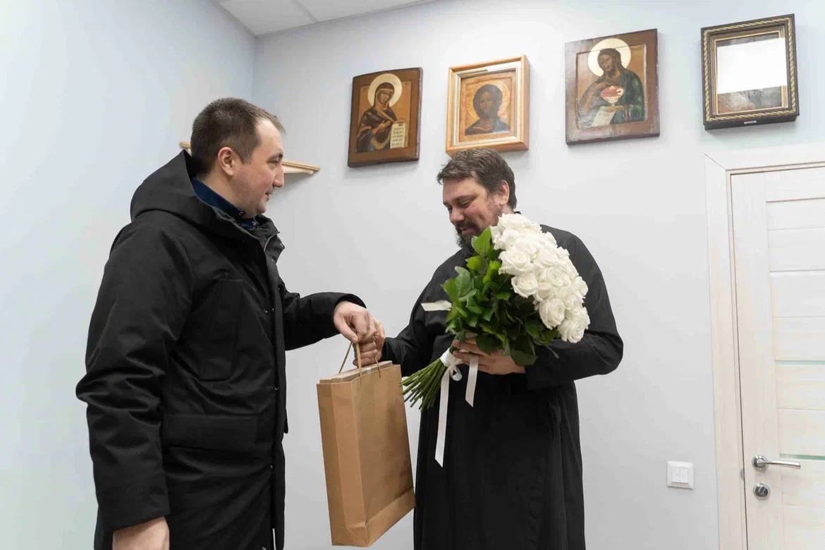 В этот светлый праздник встретился с отцом Дмитрием, пожелал ему и всем его прихожанам крепкого здоровья, душевного равновесия и счастья.