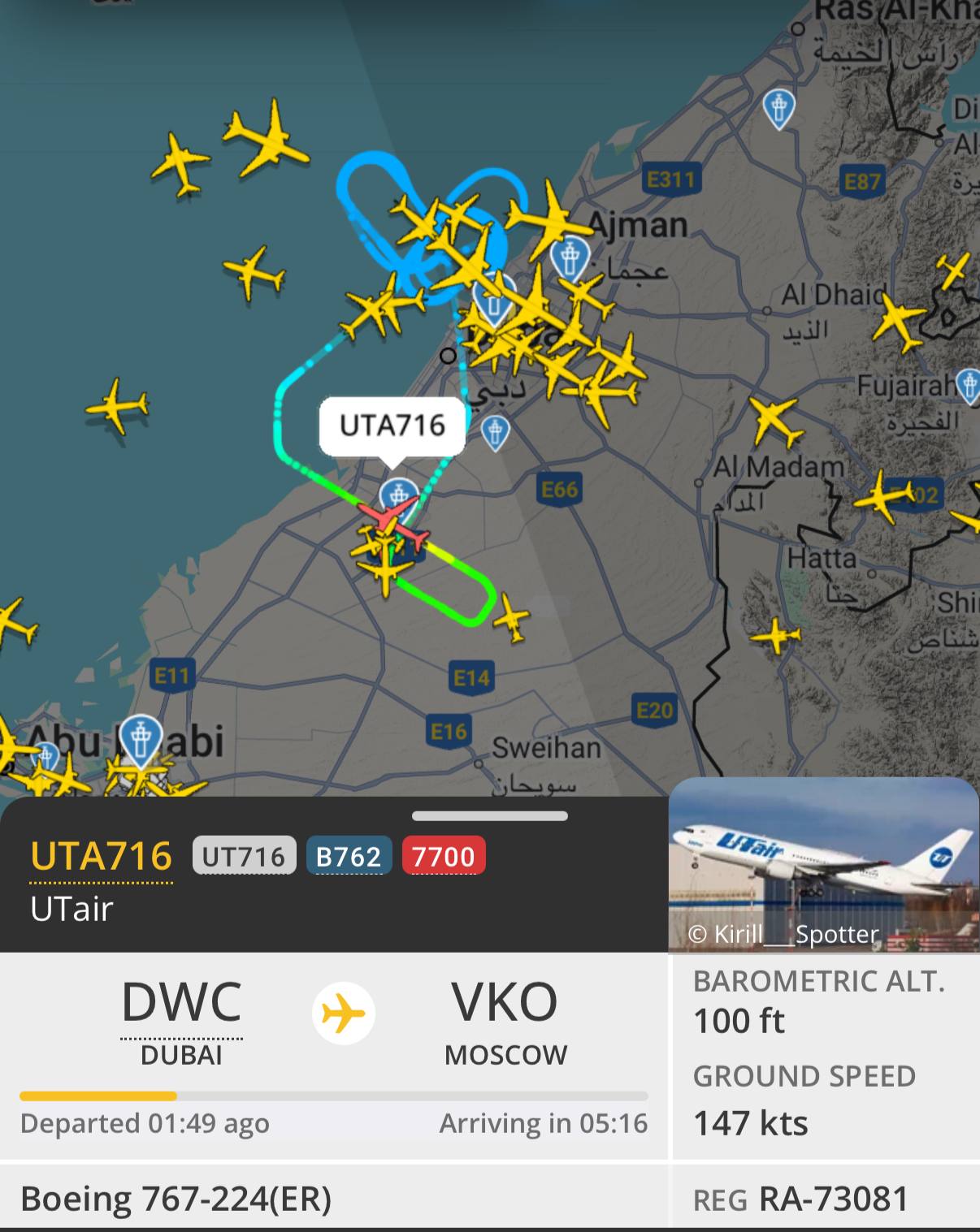 Самолет Дубай — Москва, готовится к посадке в штатном режиме в аэропорту вылета, сообщили в Utair.