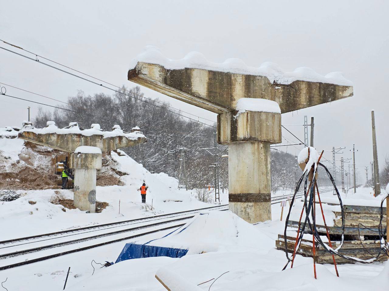 С середины января начнётся поставка металлоконструкций для нового пролётного строения с последующим укрупнением блоков. Параллельно с этим подрядчик приступит к демонтажу конуса насыпи со стороны строительного городка и сооружению новых опор №1 и №2.