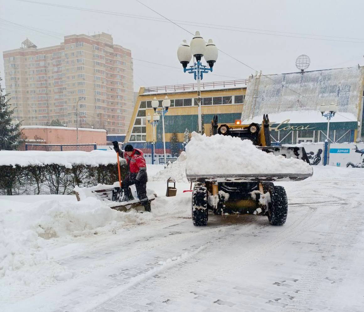 Последствия снегопада с 21.00 8 января в муниципалитете устраняет порядка 400 дворников управляющих компаний и МКУ «Благоустройство».