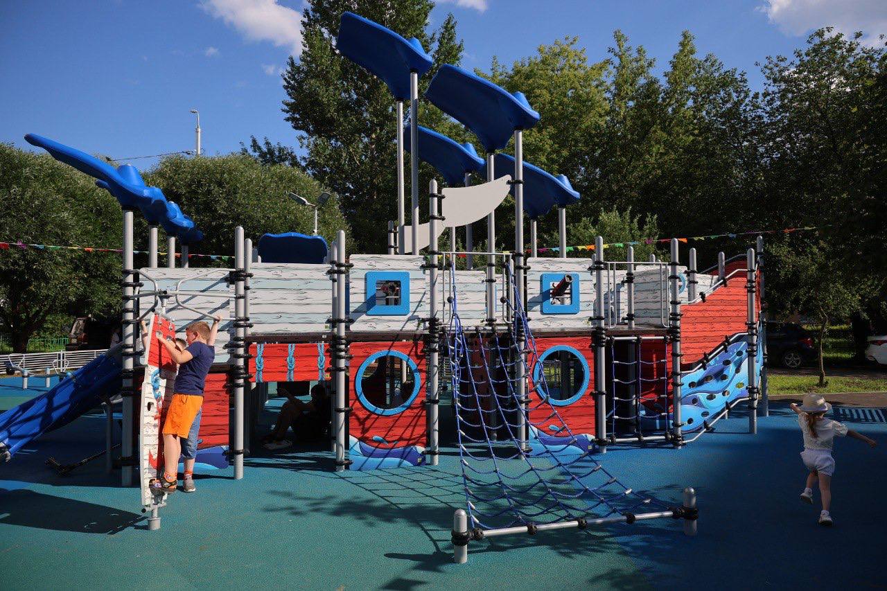 Некоторые игровые зоны были спроектированы в определенной тематике, например, детская игровая площадка «Лазурный берег», на территории которой расположены игровой комплекс «Корабль капитана Блада», качели, тренажёр-балансир, карусель, песочницы, выполненные в морском стиле.