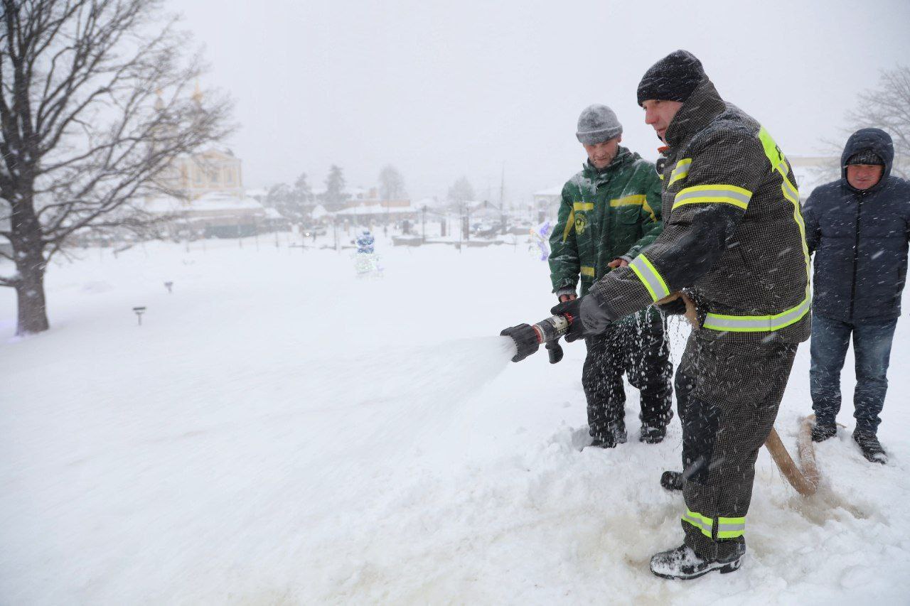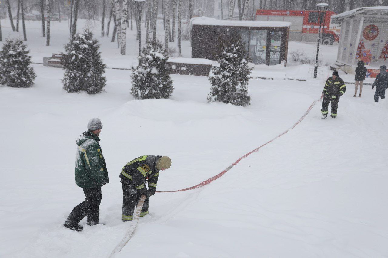 Для создания ледового покрытия выехал расчёт Сергиево-Посадского пожарно-спасательного гарнизона. В цистерне одной машины — 3 тонны воды. По предварительным подсчётам, на заливку такой горки потребуется около 4 машин.