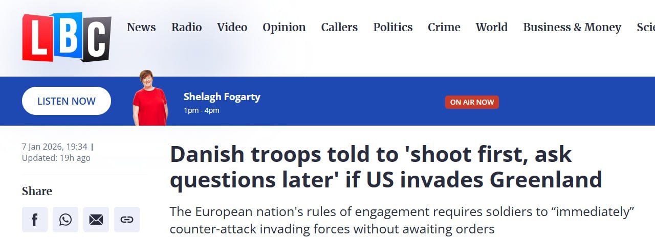 ДАНИЯ ПОДТВЕРДИЛА ПРИКАЗ ВОЙСКАМ СТРЕЛЯТЬ БЕЗ ПРЕДУПРЕЖДЕНИЯ В СЛУЧАЕ АМЕРИКАНСКОГО ВТОРЖЕНИЯ НА ГРЕНЛАНДИЮ - LBC