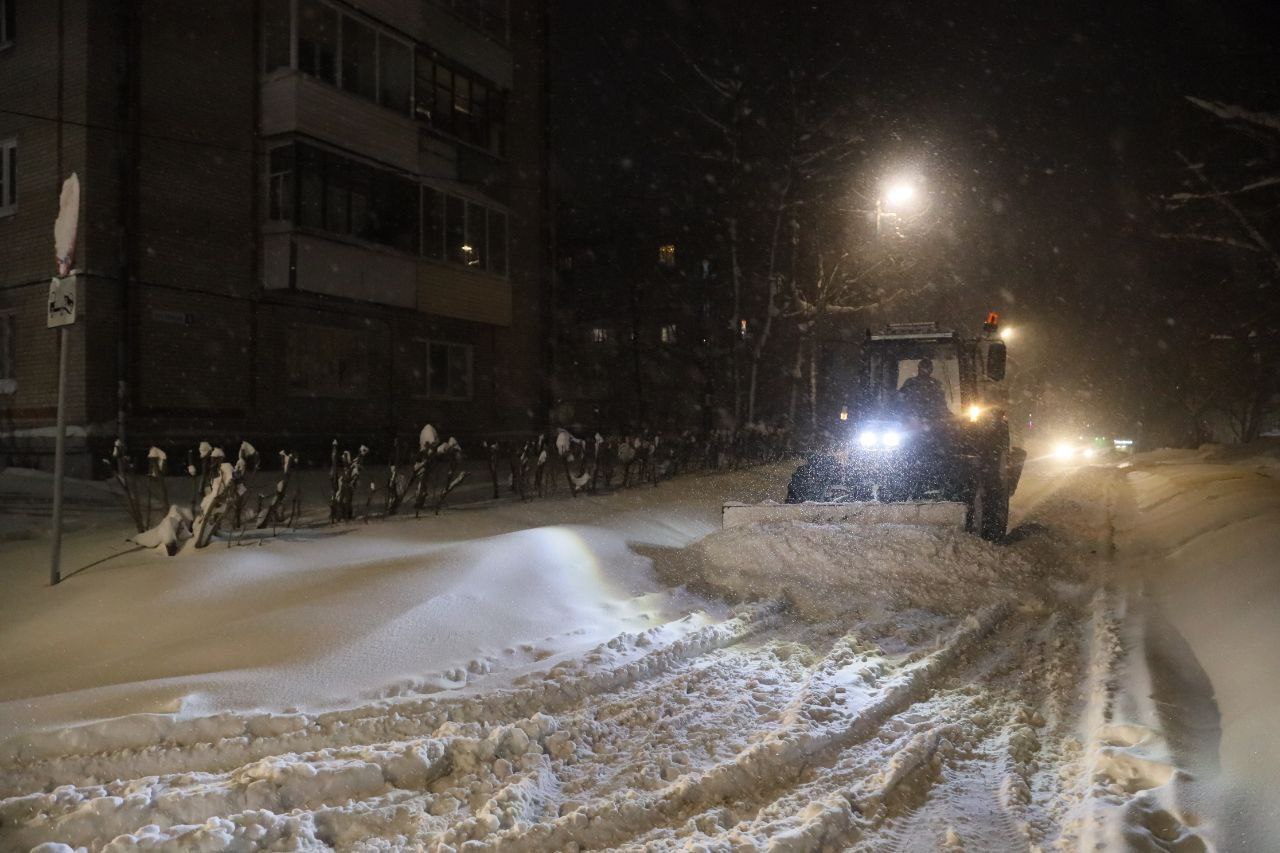 Техника будет работать в округе усиленном режиме всю ночь. Завтра планируем начать вывоз снега.