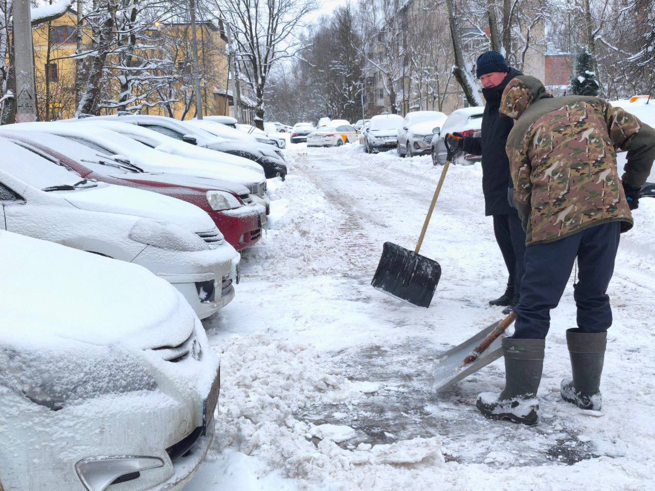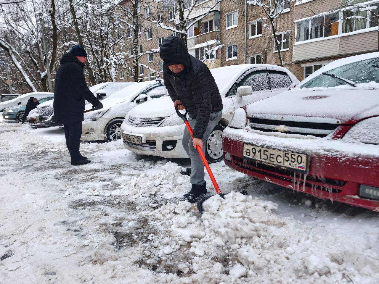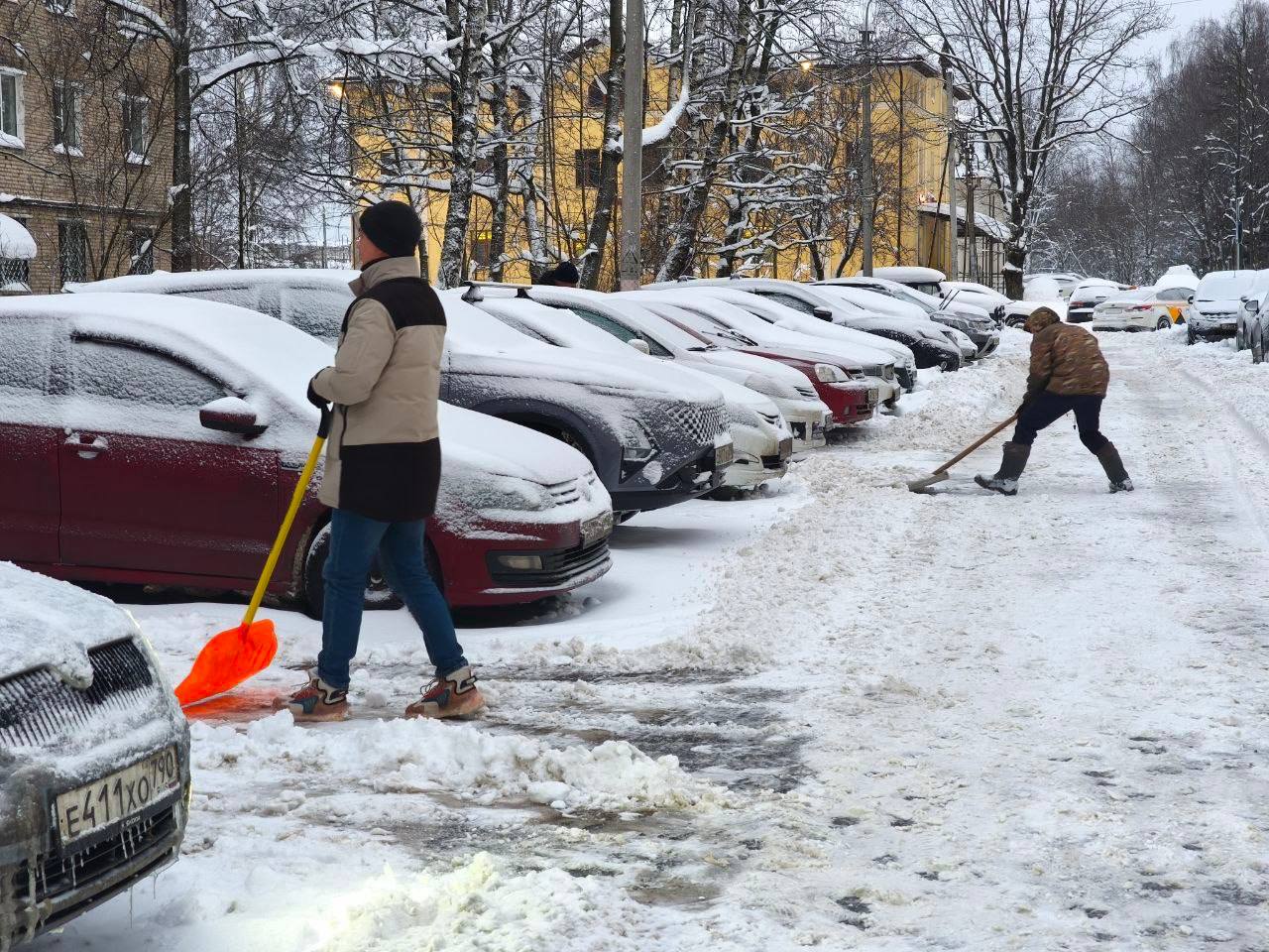 Например, во дворе дома №111/4 по улице Вознесенской люди принялись очищать парковочные места, дороги и тротуары от снега.