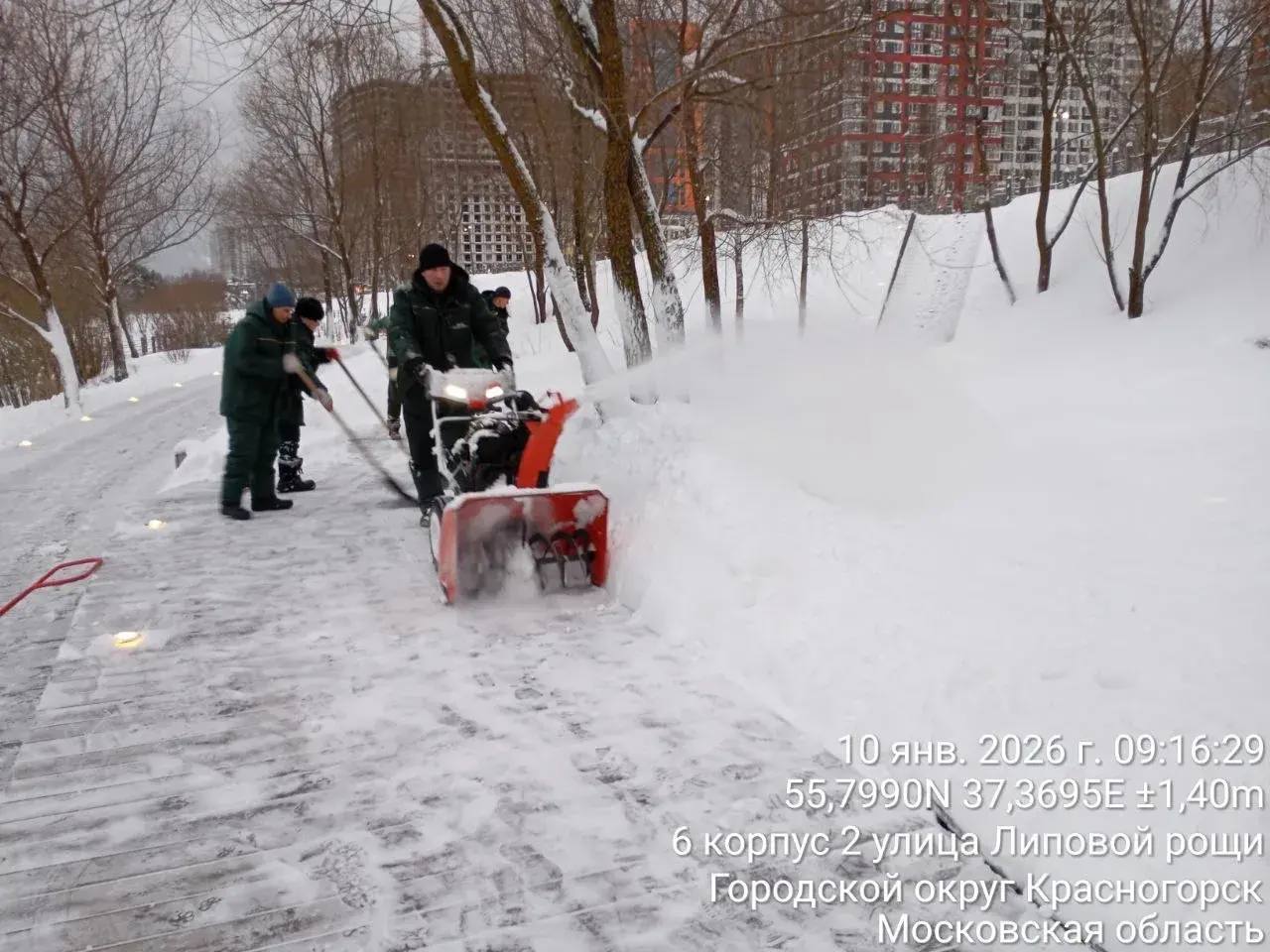 В Красногорске продолжается работа по ликвидации последствий снегопада. Основной приоритет - расчистка дорожно-тротуарной сети, дворов и общественных территорий