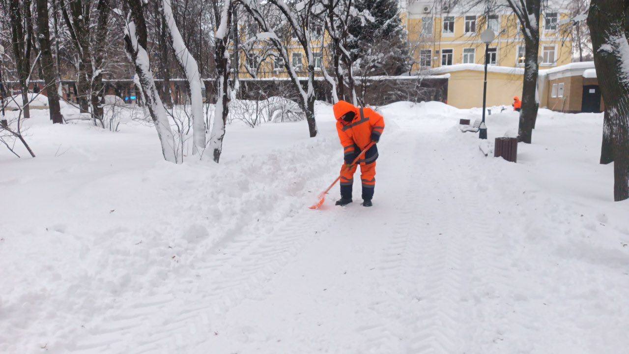 Сотрудники коммунальных служб и спецтехника проводят уборку на улицах Зои Космодемьянской,