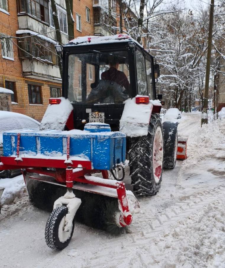 По городу курсирует специализированная техника. Тракторы, мини-погрузчики, самосвалы, комбинированные дорожные машины чистят снег на улицах, во дворах и на проезжей части.