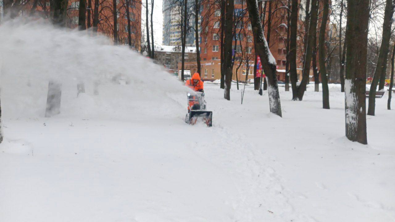 В связи с мощным снегопадом, который вчера обрушился на регион, коммунальные службы Химок продолжают работать в усиленном режиме. Снег убирают во всех микрорайонах.