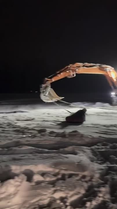 Местные придумали экстремальное развлечение: привязали «ватрушку» к экскаватору и раскрутили по кругу. Однако веселье закончилось быстро — через несколько оборотов парень не удержался, вылетел с тюбинга и упал в снег.