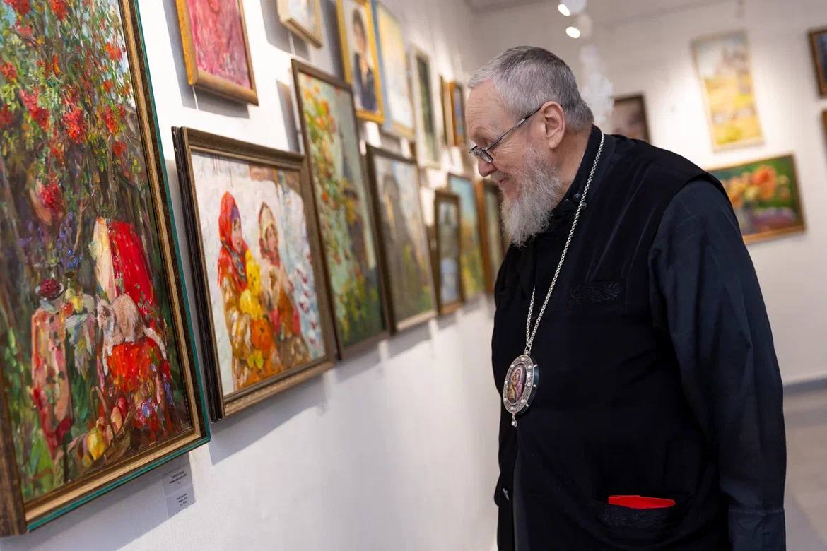 На стенах Выставочного зала в Орехово-Зуеве 190 работ, и все они объединены любовью к Родине, природе, к русской культуре. На полотнах и православные мотивы: церкви, иконы, иконостасы, священнослужители, фрагменты росписи храмов и праздничные натюрморты.