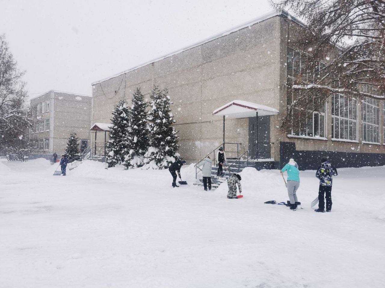 К расчистке территорий подключаются педагоги, родители и сами учащиеся. Совместными усилиями приводим в порядок входные группы и школьные дворы.