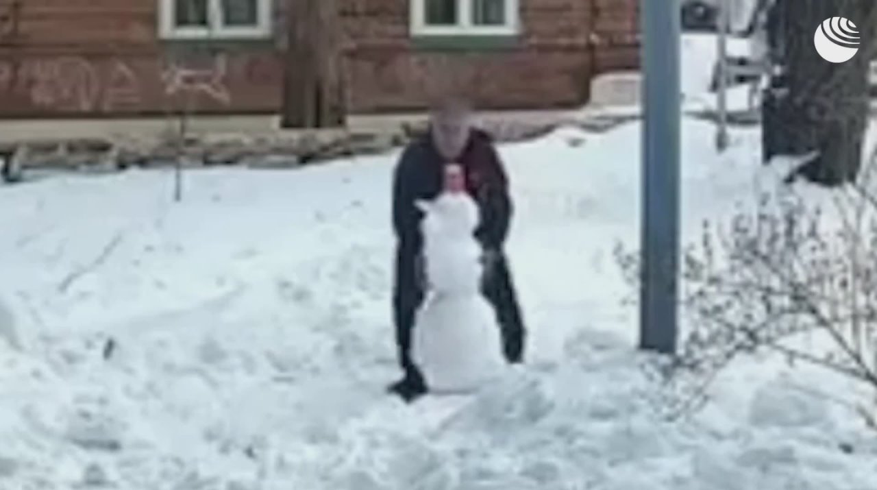 Водитель трактора не стал сносить снеговика