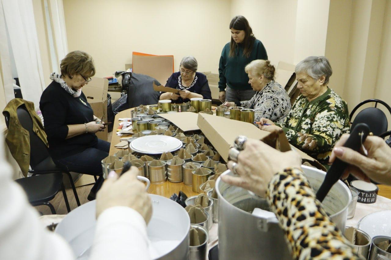 Сейчас волонтёры делают из банок долго горящие окопные свечи – одна такая горит больше пяти часов. Скоро они закончат работу и отправят всё бойцам на передовую.