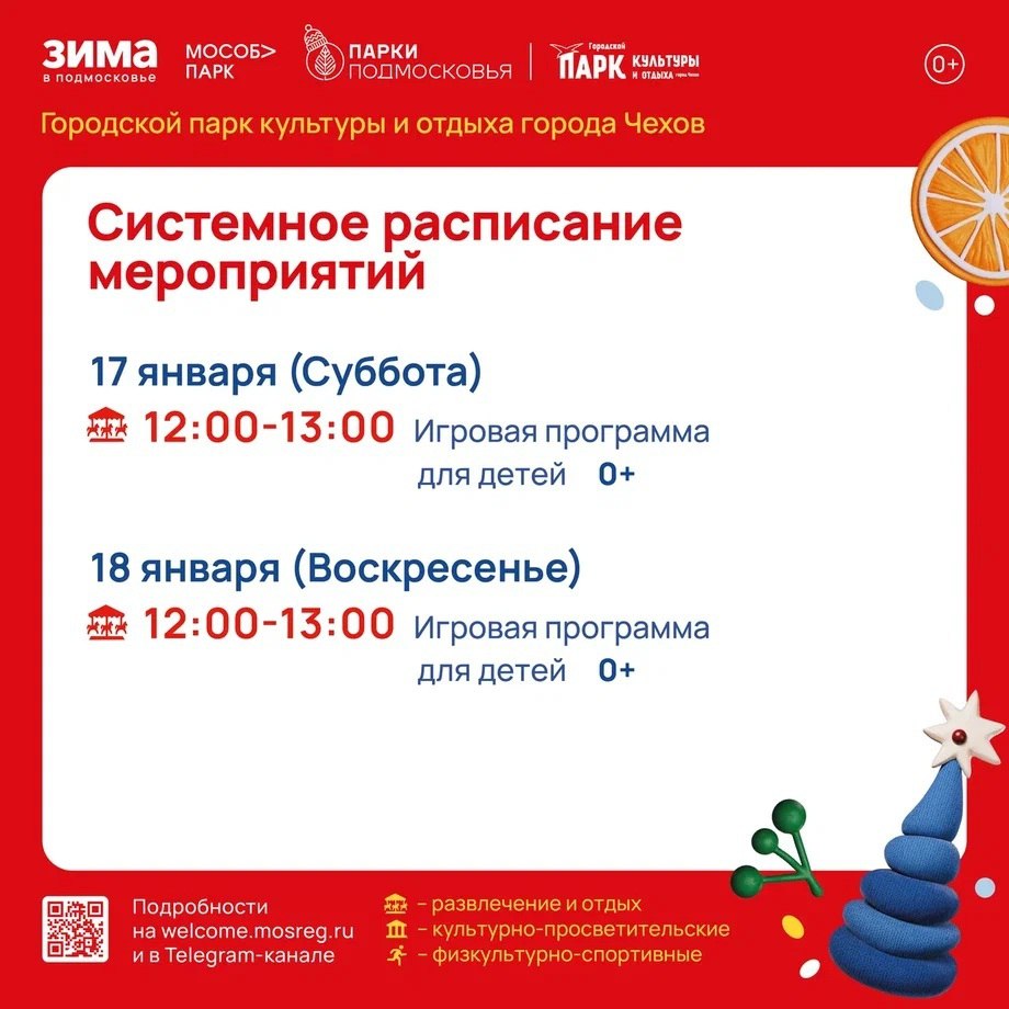 Расписание на неделю в Парках Чехова (12 января - 18 января).