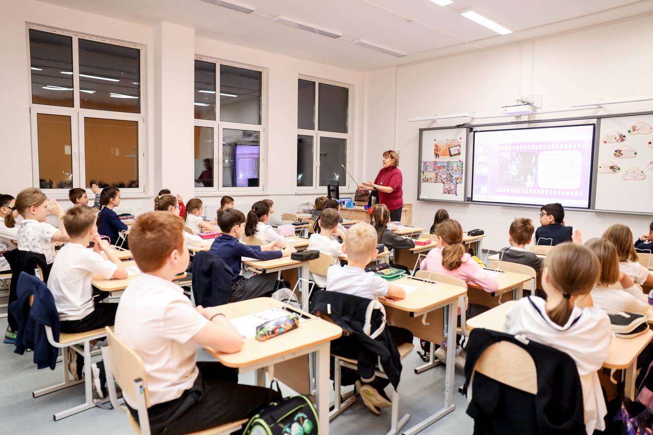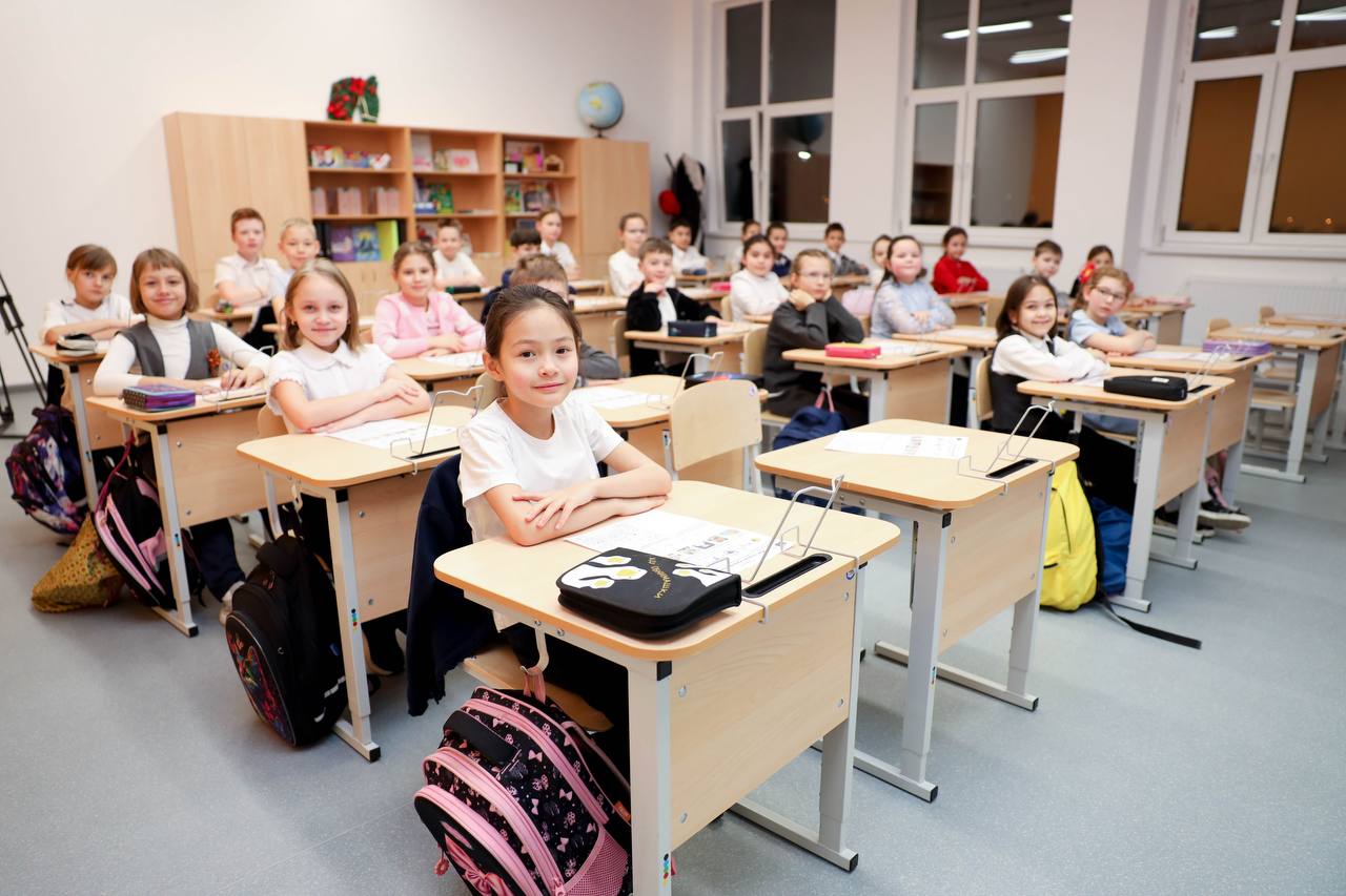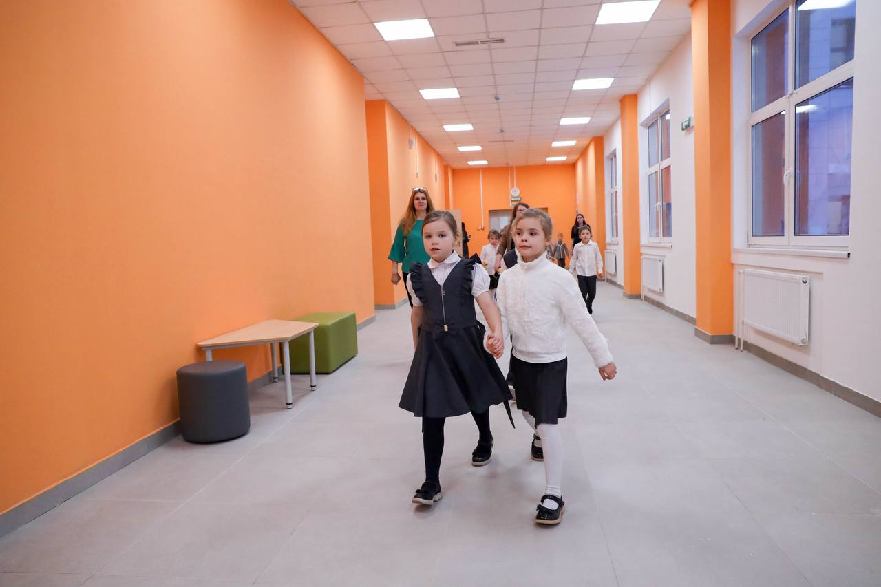 В новом корпусе гимназии №17 начались занятия. Сегодня ребята первый раз сели здесь за парты. Теперь они будут учиться в одну смену.