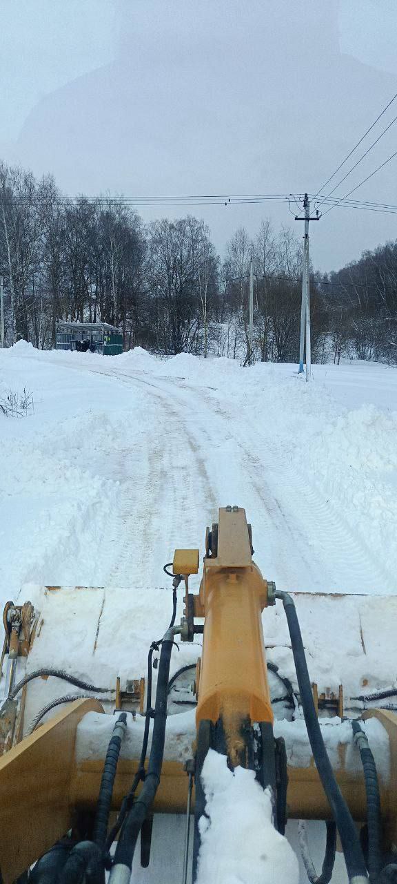 Два трактора в паре чистят район Бочманово, потом перейдут в поселок Кирова. Еще один трактор после обеда выедет в Подлипки. А в микрорайоне Колычёво работает грейдер - расширяет дороги.