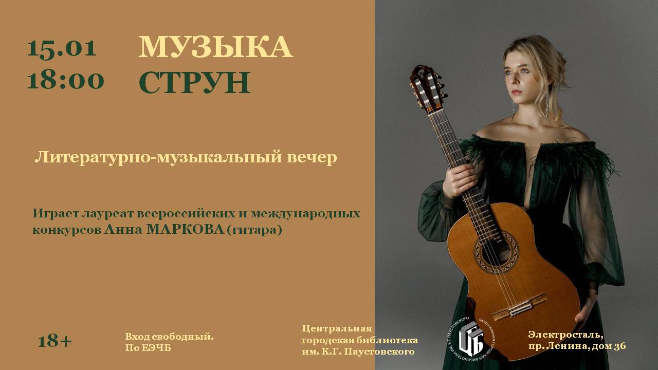 15 января в Центральной городской библиотеке им. К.Г. Паустовского пройдет литературно-музыкальный вечер «Музыка струн».