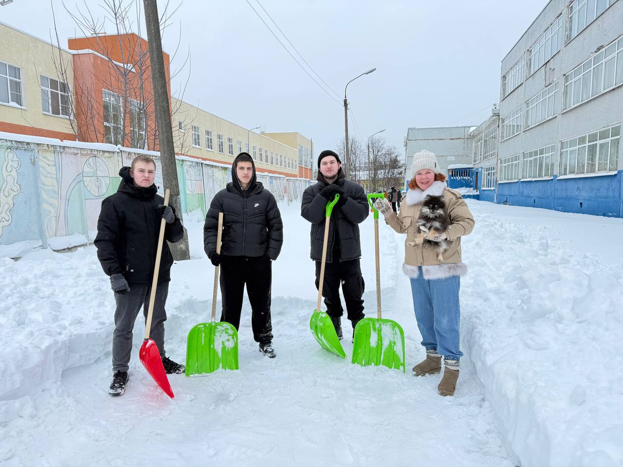 Особую атмосферу и заряд позитива привнесли четвероногие питомцы. Верные друзья участников акции не просто «помогали» осваивать сугробы — они стали настоящими мотиваторами для всех, кто трудился в тот день.