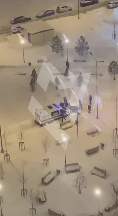 Скорая застряла в снегу в столичном дворе. Помочь медикам выбраться из снежной западни собрались очевидцы.