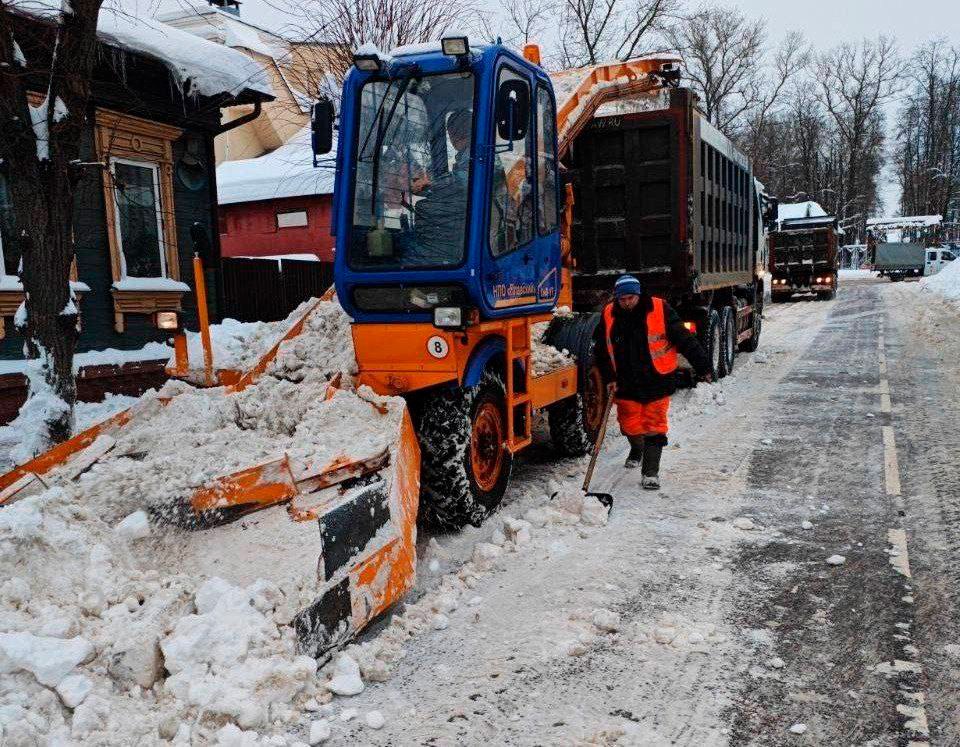 С момента начала снегопада коммунальные службы вывезли более 8 тыс. кубов снега на снегобазы Серпухова, Пущино, Протвино.