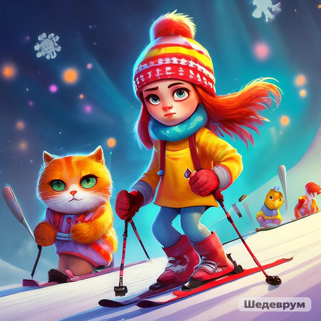 Возле Дома культуры соберёмся на соревнования на лыжах.