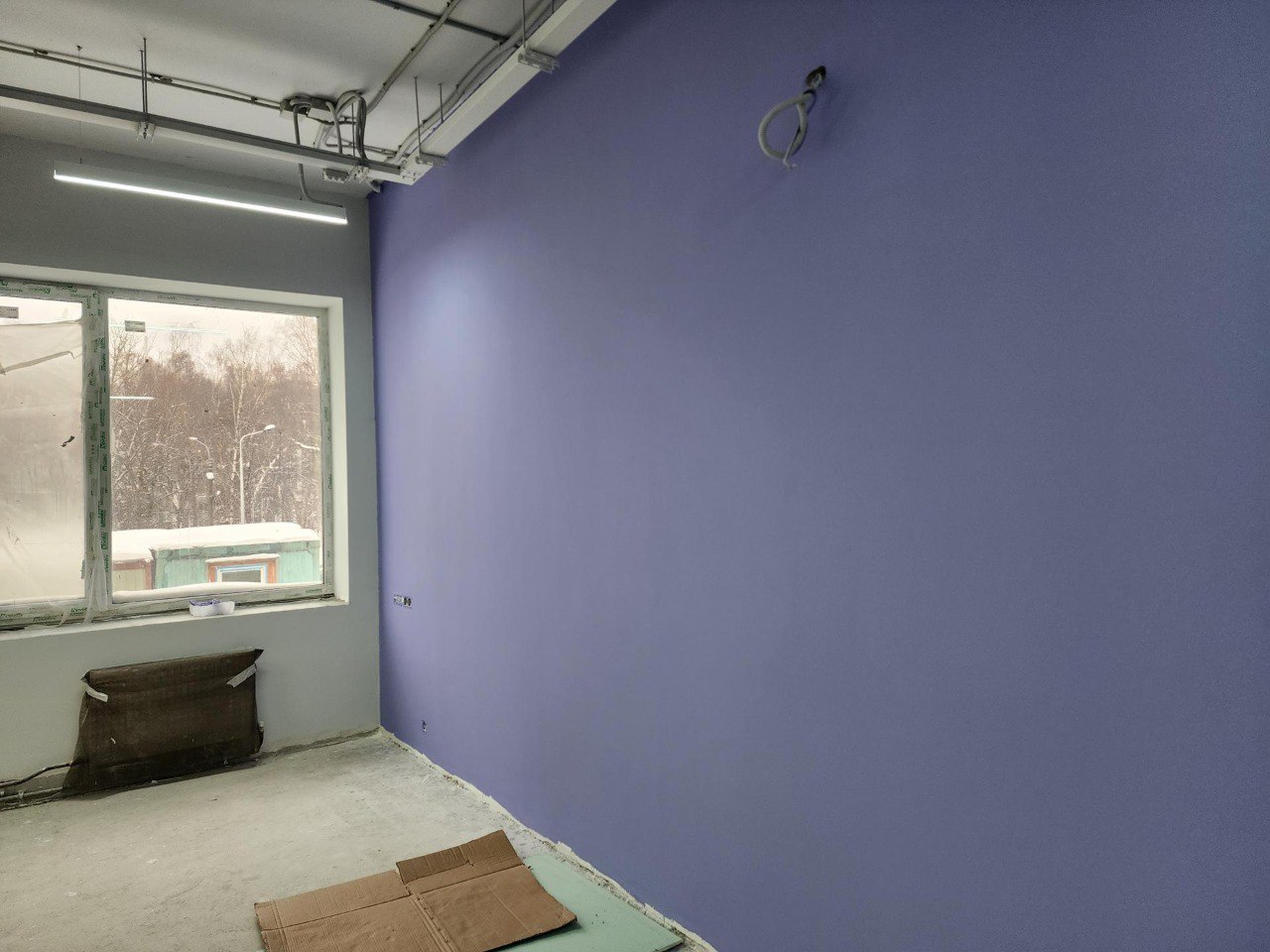 на втором и третьем этажах классы уже покрашены и готовятся к укладке напольного покрытия