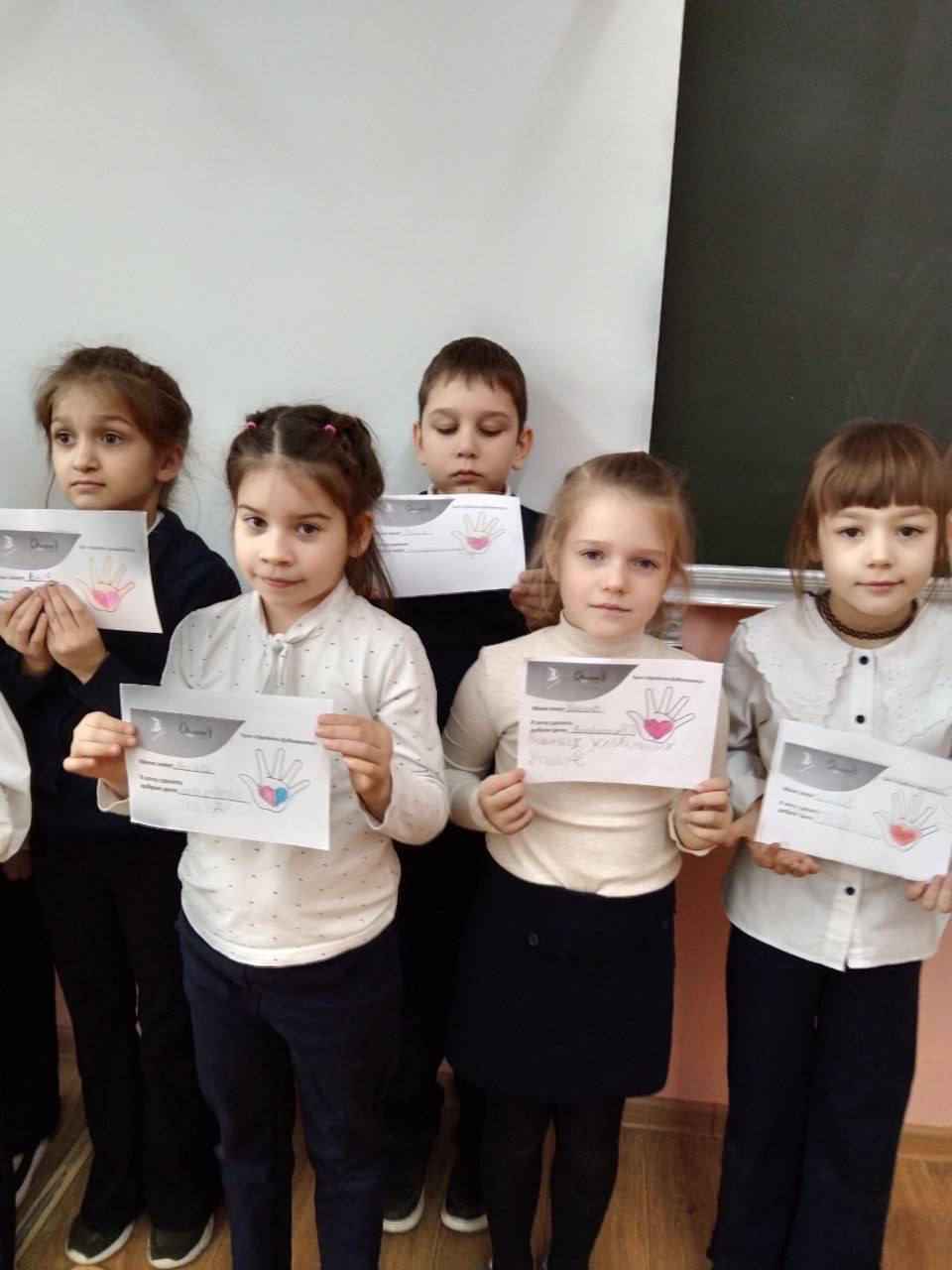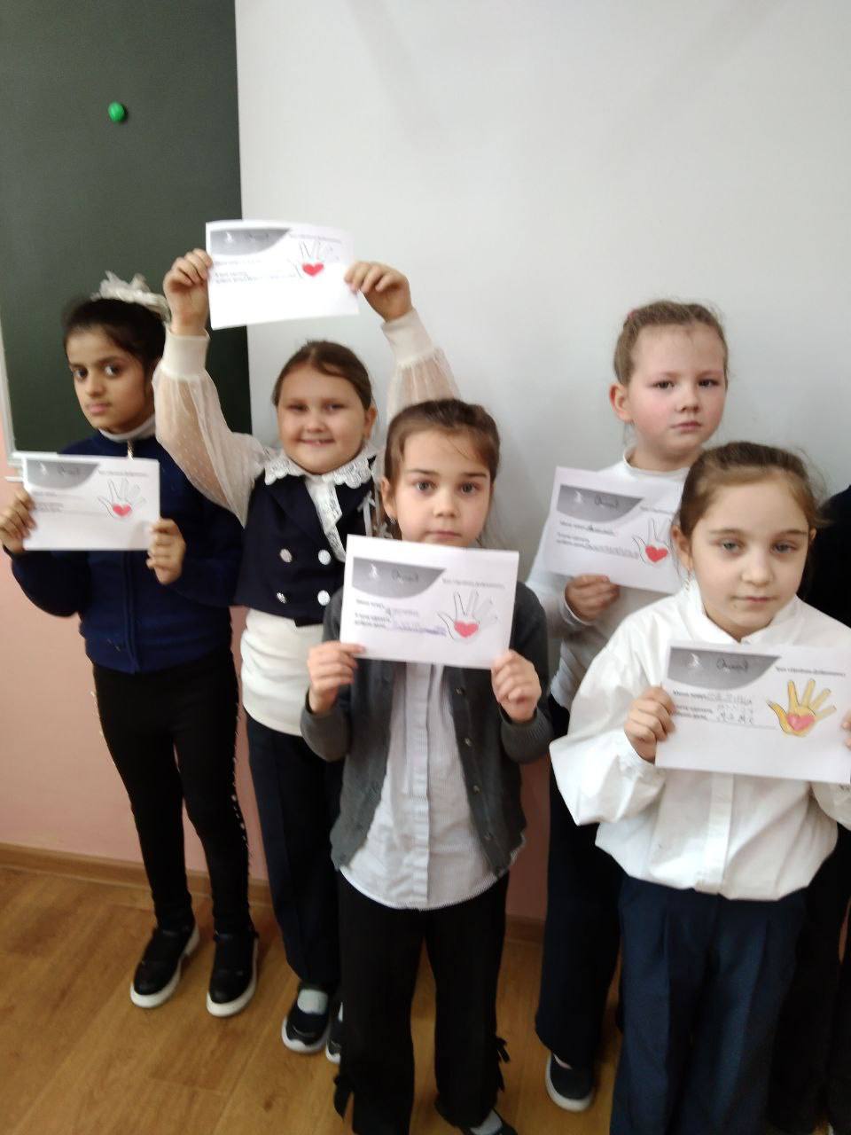Творческая деятельность: учащиеся сделали своими руками оригинальные символы волонтёрства — ладошки с сердечками.