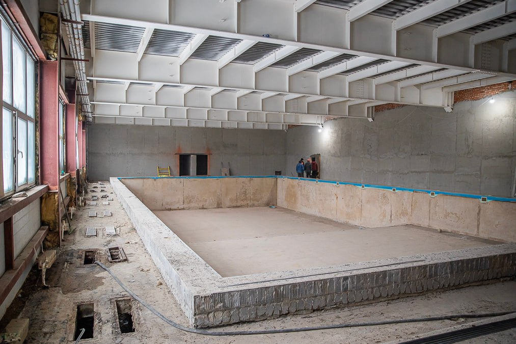 После ремонта это будет современный и удобный комплекс. На первом этаже разместятся основной спортивный зал, большой и малый бассейны, тренерские, кафе, комфортные раздевалки с душевыми. На втором — залы для бокса, гимнастики и фехтования.