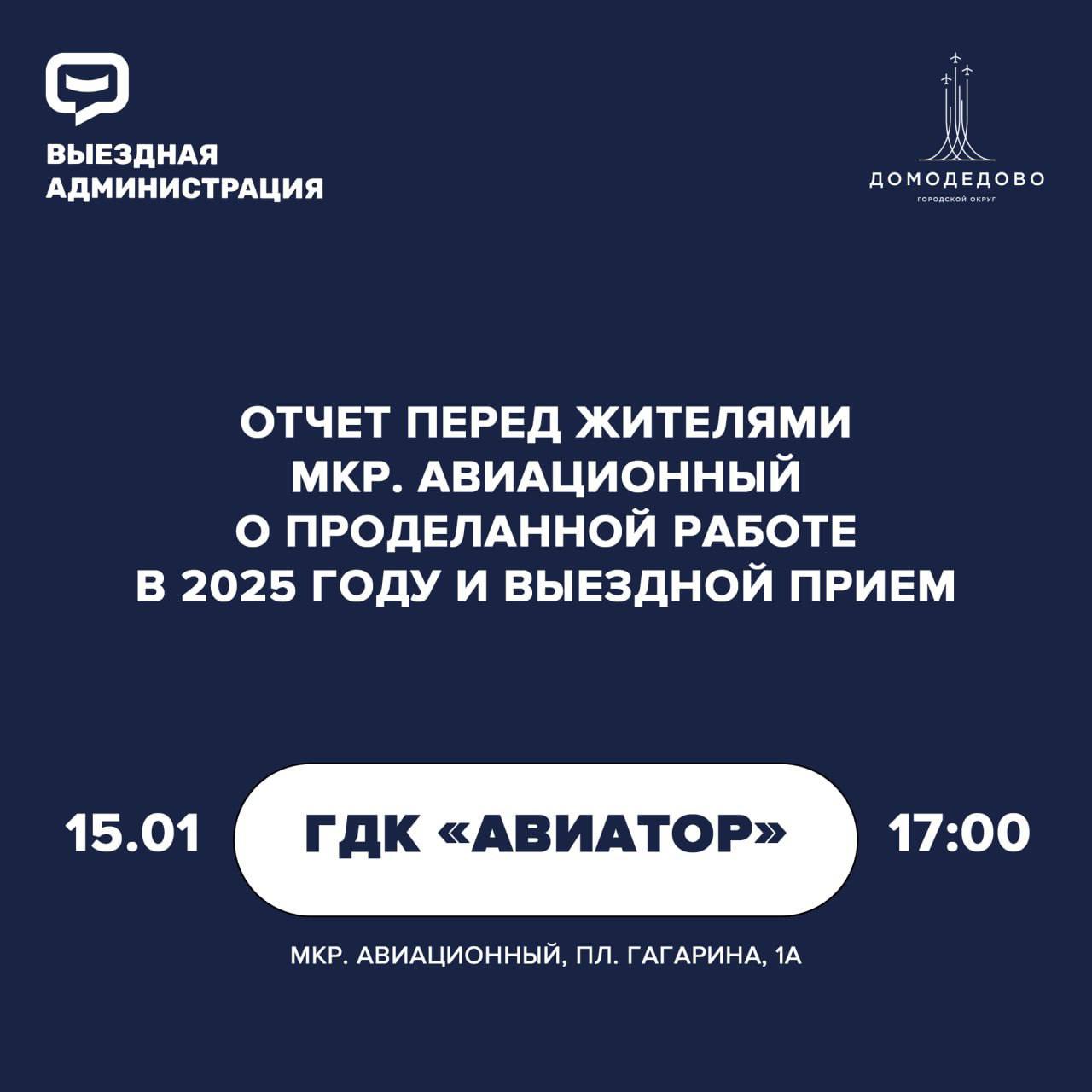 ГлаваДомодедово Евгения Хрусталева вместе с командой расскажет об итогах 2025 года и о планах на 2026-й. Встреча будет состоять из двух частей: сначала отчёт о проделанной работе, а затем ответы на вопросы жителей в рамках выездной администрации.