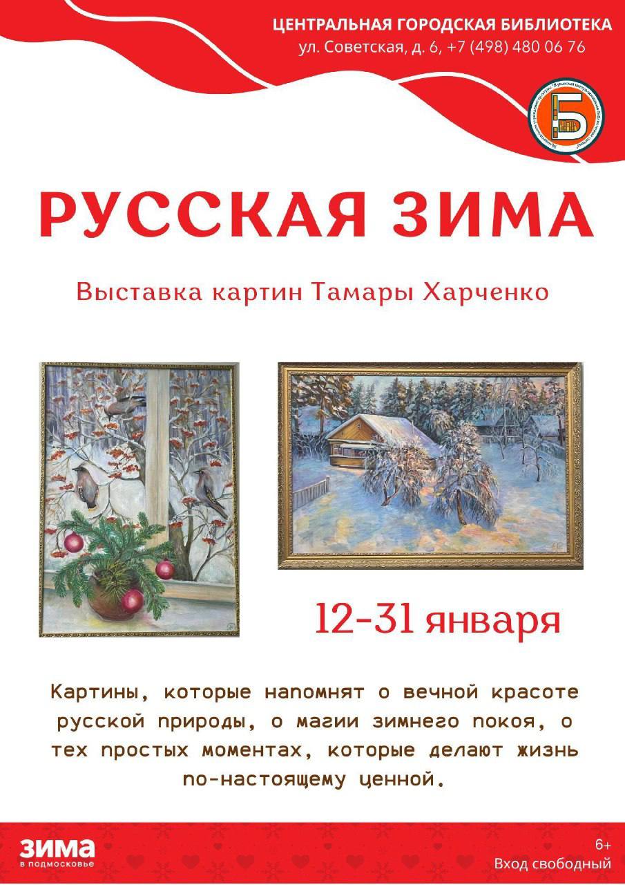 В Центральной библиотеке открылась выставка «Русская зима», на которой представлены работы местной художницы Тамары Харченко.