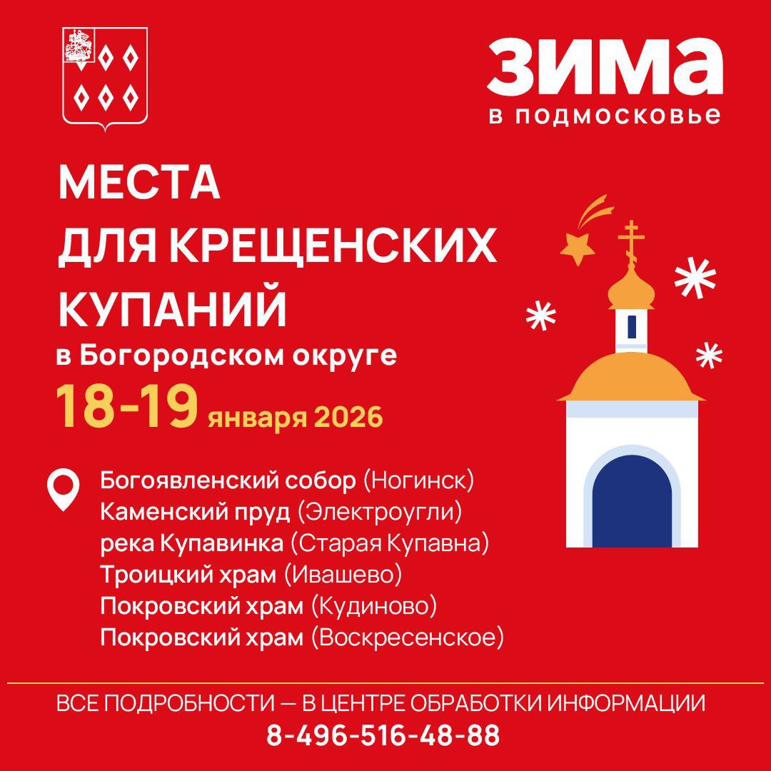 На территории Богородского округа накануне праздника будут подготовлены места Крещенских купаний при храмах, а также на водоёмах: