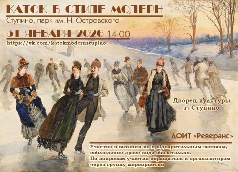 Лед в парке Островского в Ступино снова станет порталом в прошлое. 31 января здесь повторят успешный эксперимент прошлой зимы — «Каток в стиле модерн», где главным условием станет не умение кататься, а погружение в эпоху.