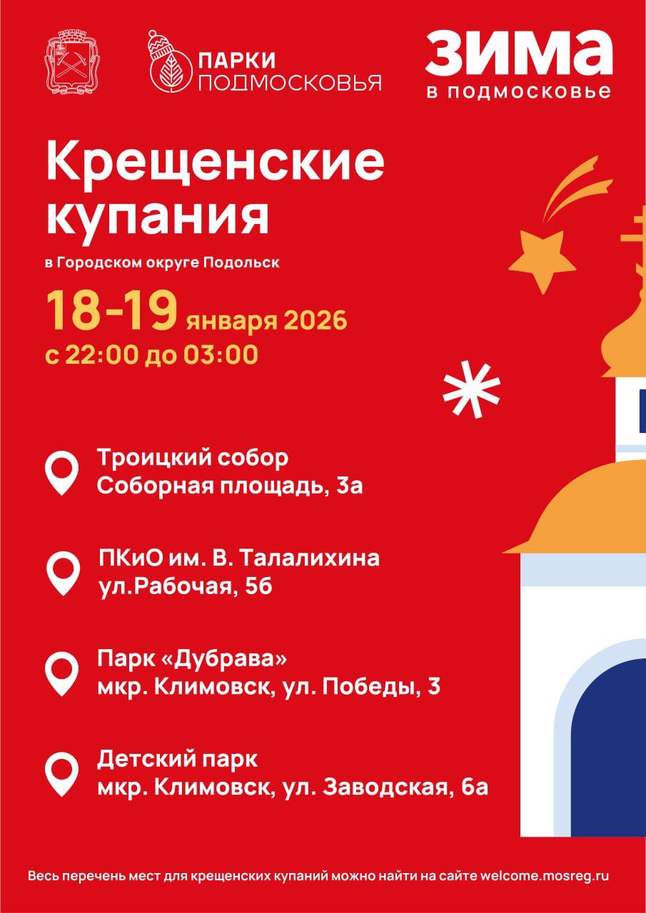 В ночь на 19 января вместе отметим один из самых значимых православных праздников — Крещение Господне. Сделаем всё, чтобы крещенские купания прошли спокойно, безопасно и в комфортных условиях.