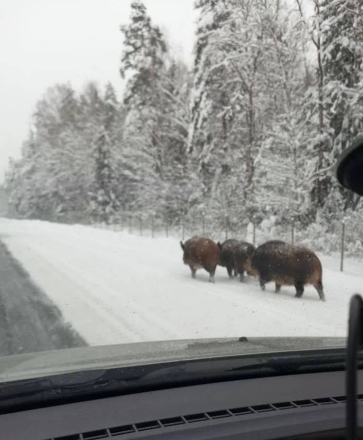 Трёх упитанных кабанов заметили на обочине дороги в Жуковском