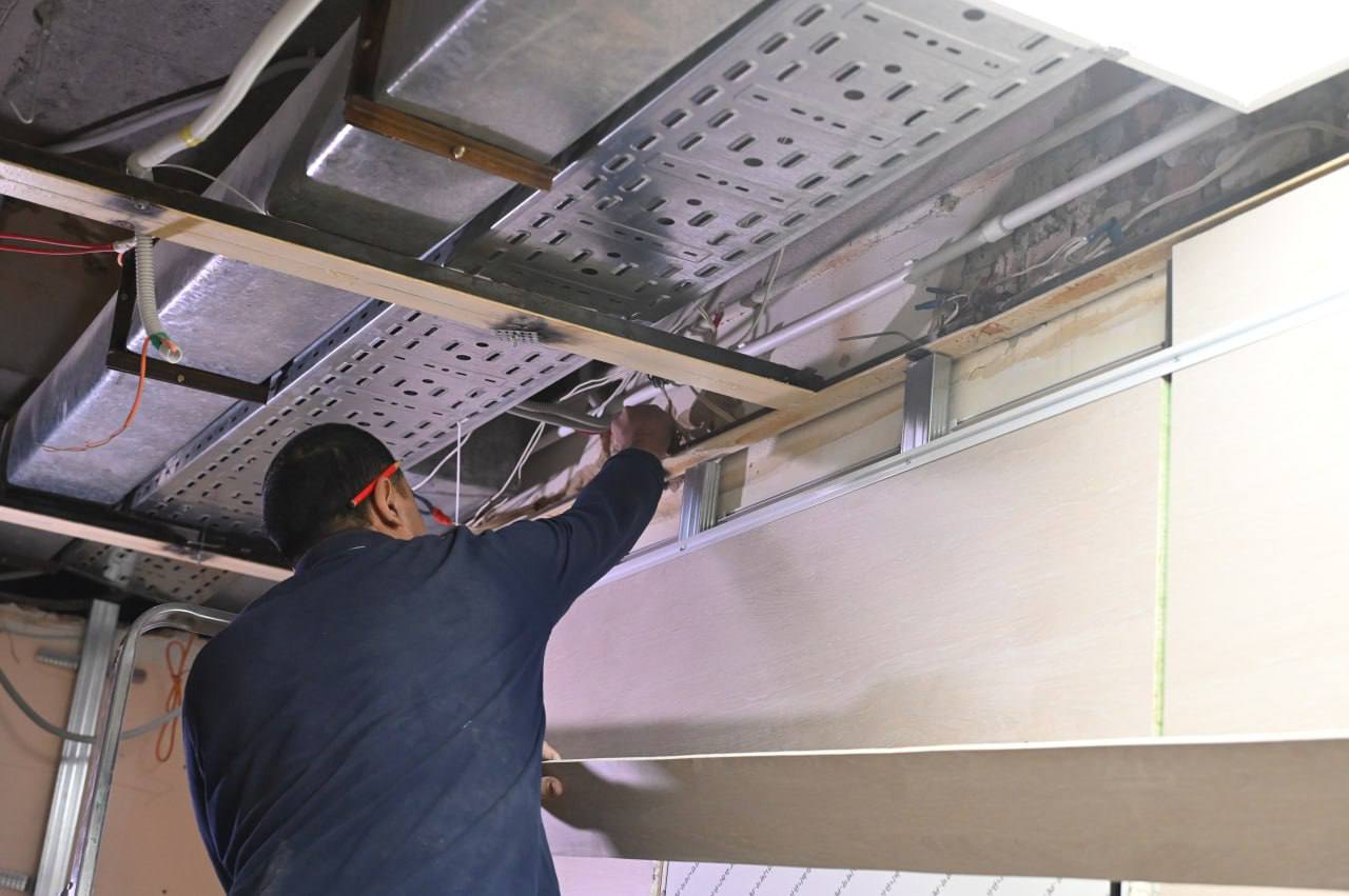 Ключевые работы на объекте уже выполнены: полностью обновлены электрика и двери, а также на 90% установлены специальные антивандальные панели на стенах. Следующим этапом станет полная замена потолочного покрытия на плитки «Армстронг».