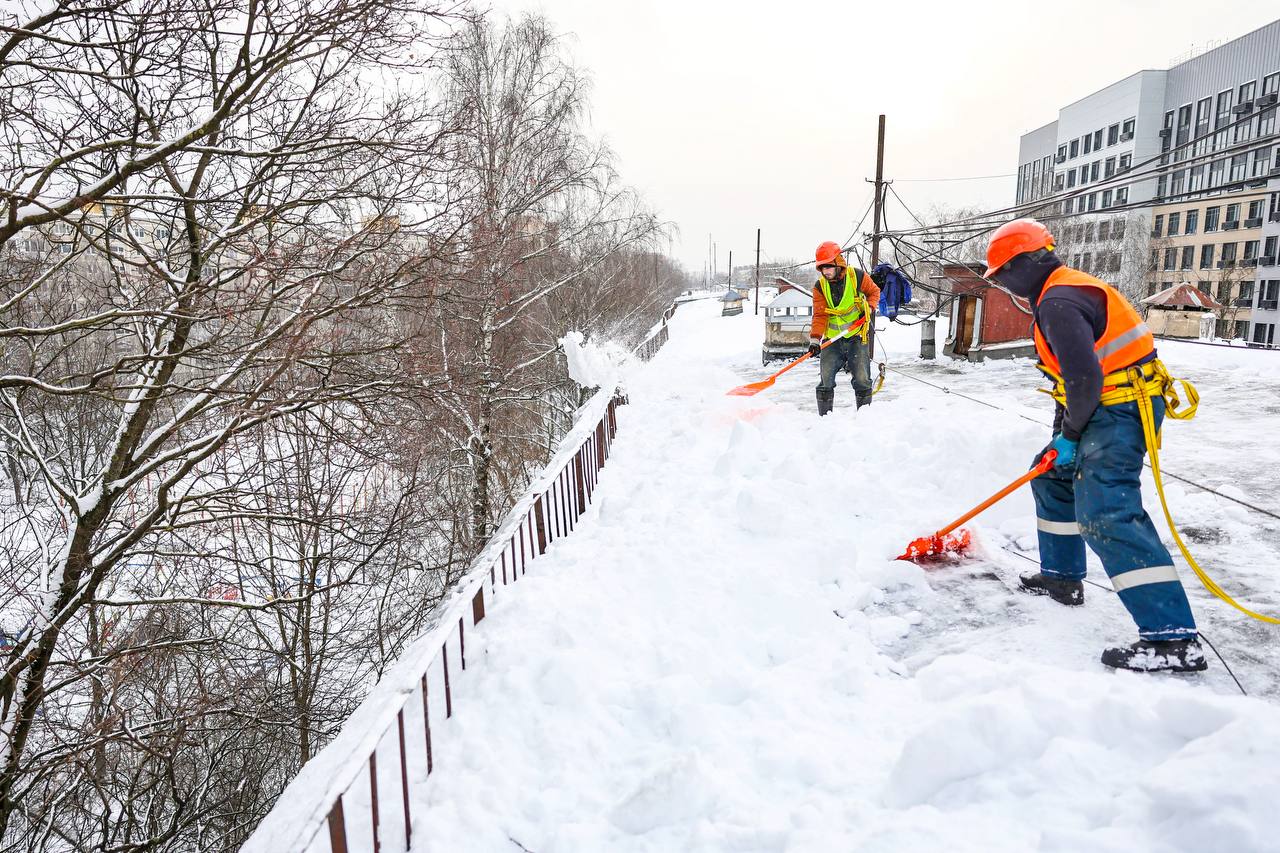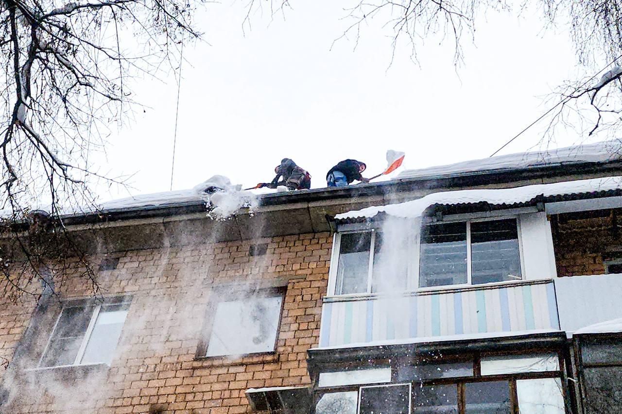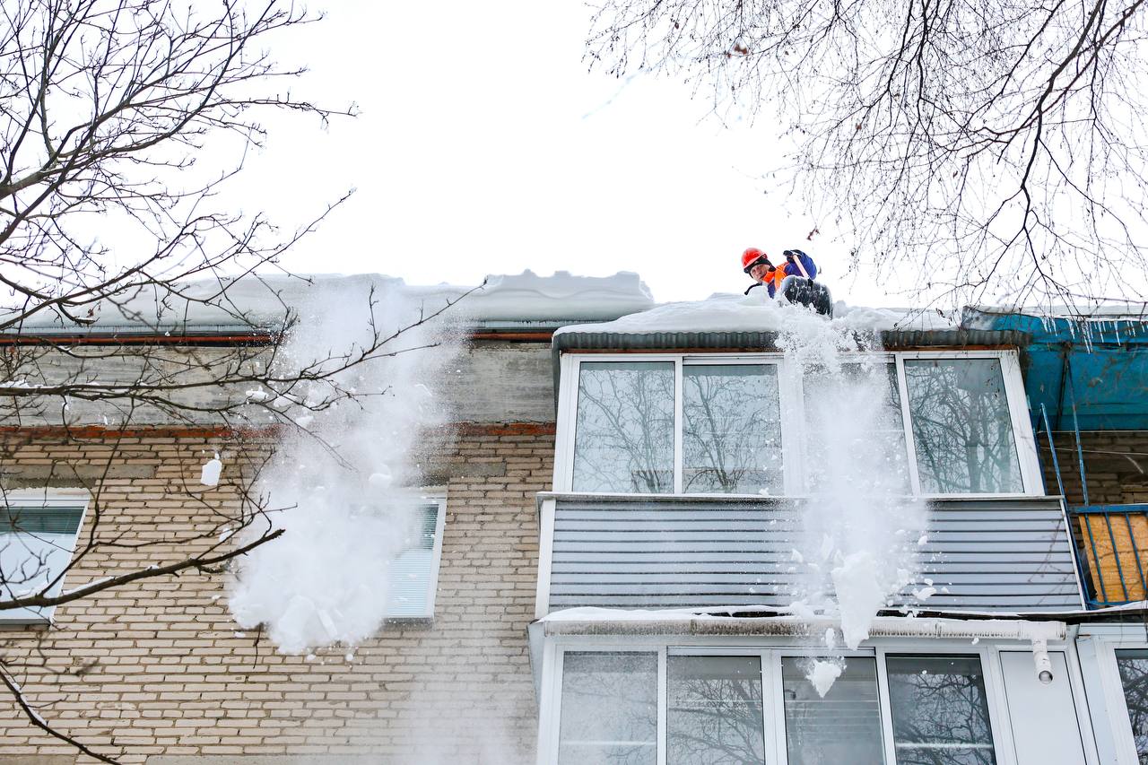 Проводим уборку кровель, чистим парапеты и свесы балконов, убираем снег и лед