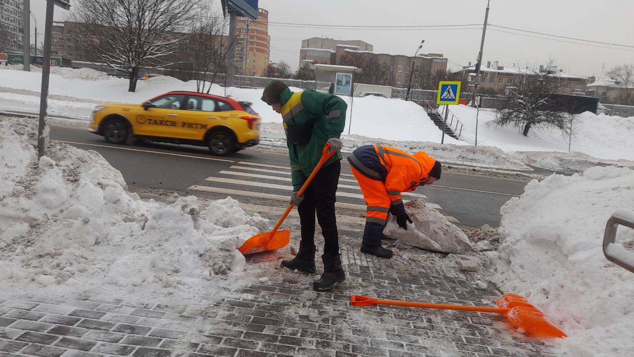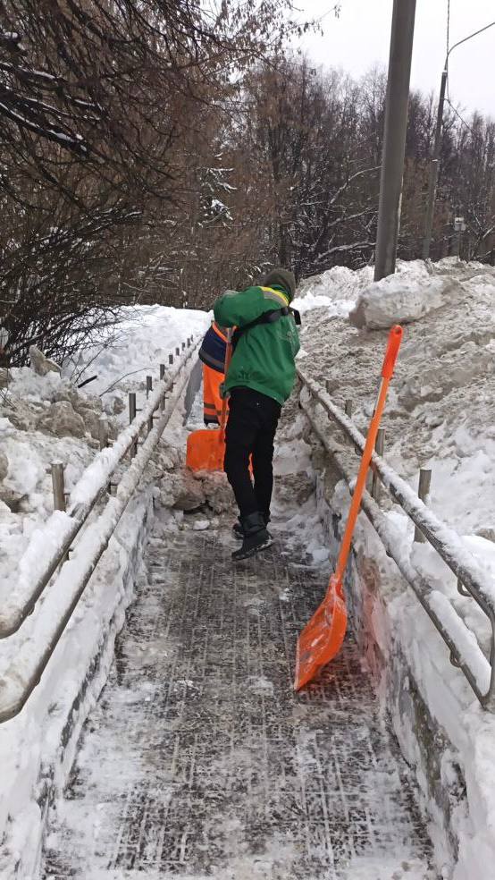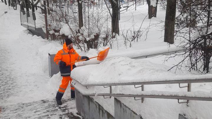 Городские службы убирают снег в общественных пространствах, чтобы прогулки горожан были безопасными и комфортными.