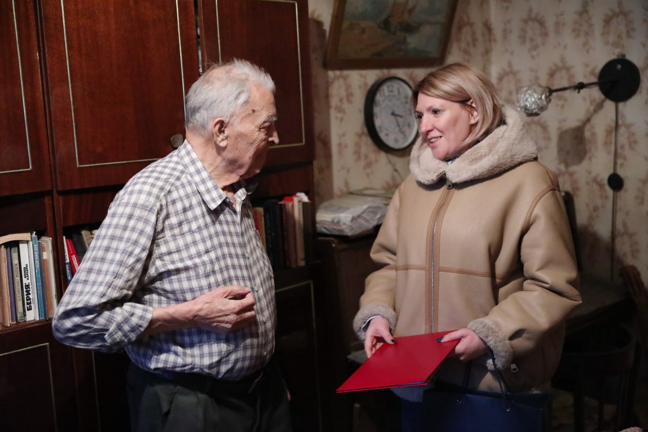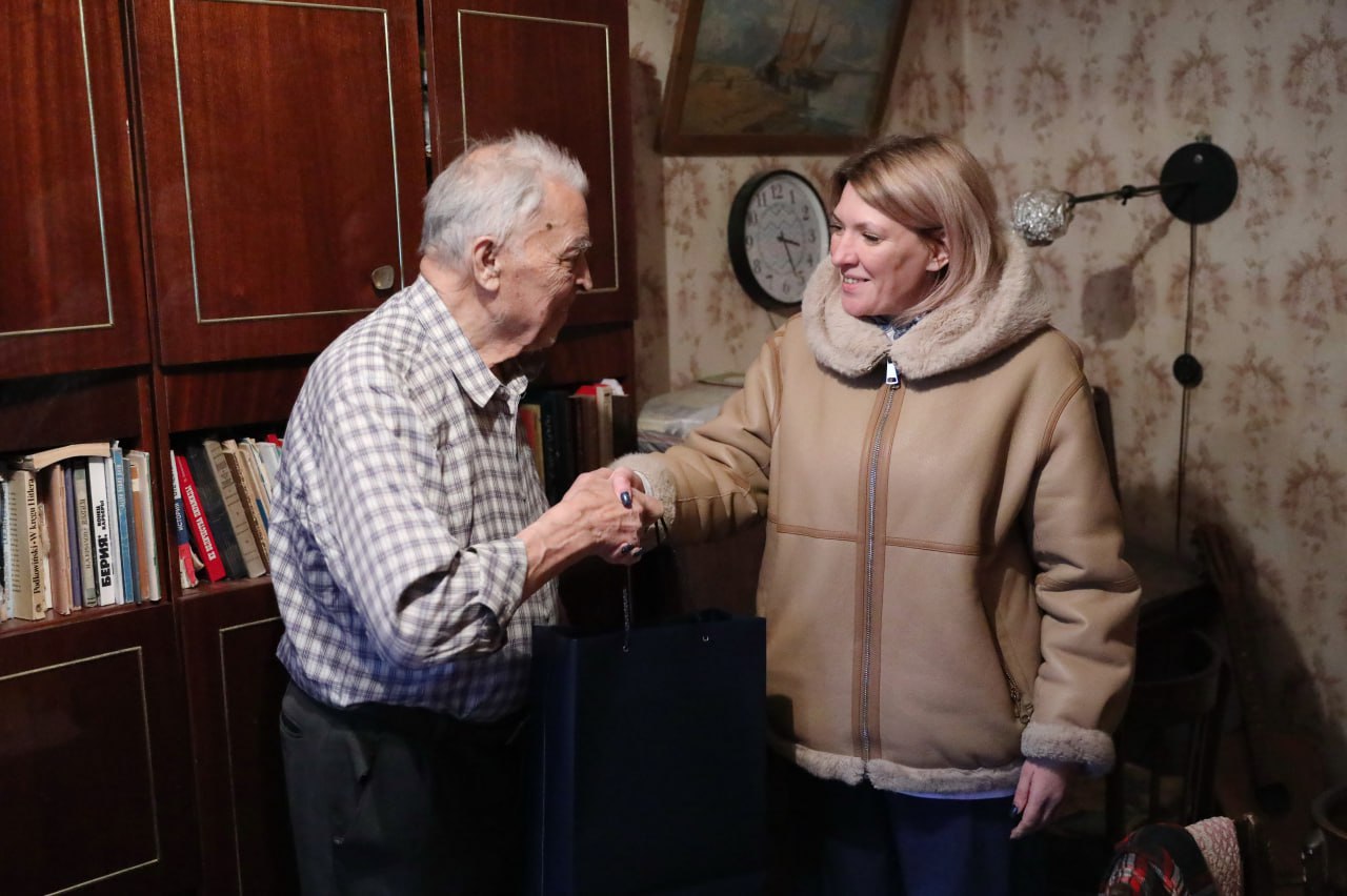 15 января по поручению главы Долгопрудного Олега Сотника Владимира Михайловича поздравила с юбилеем заведующая отделом территориальной политики Управления делами администрации округа Ирина Невзорова. Она передала ветерану самые добрые пожелания и подарок от главы города.