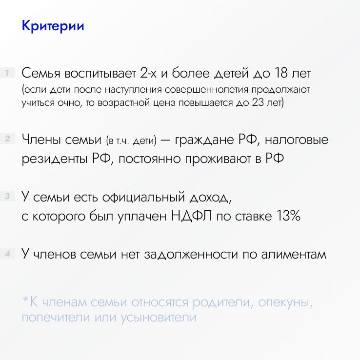 Семьи с двумя и более детьми могут вернуть 7% от уплаченного НДФЛ.