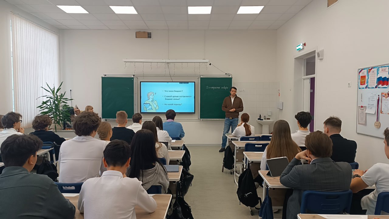 Совместно с начальником управления экономики Дмитрием Дмитриевичем Бирюковым приняла участие в уроке для учеников 9 класса МБОУ «Гимназия № 7». Тема занятия — «Бюджет семьи» — была посвящена основам грамотного планирования личных финансов.