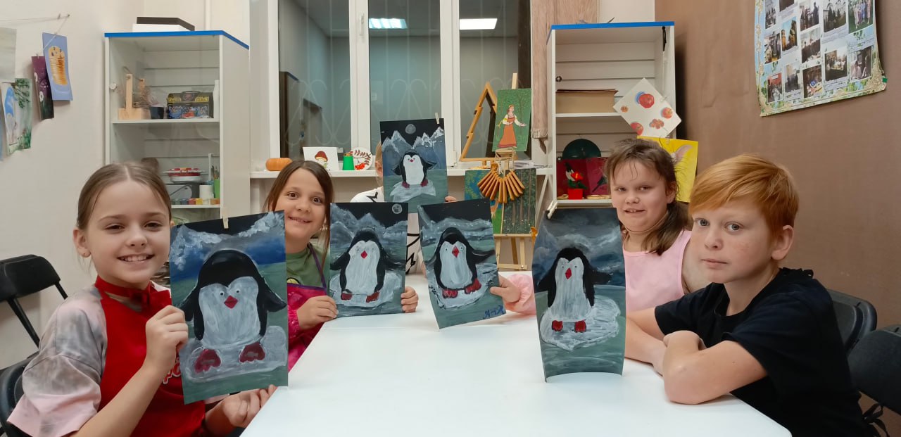 Художественный мастер-классе "Животные холодных стран. Пингвины" состоялся для детей муниципального округа Чехов