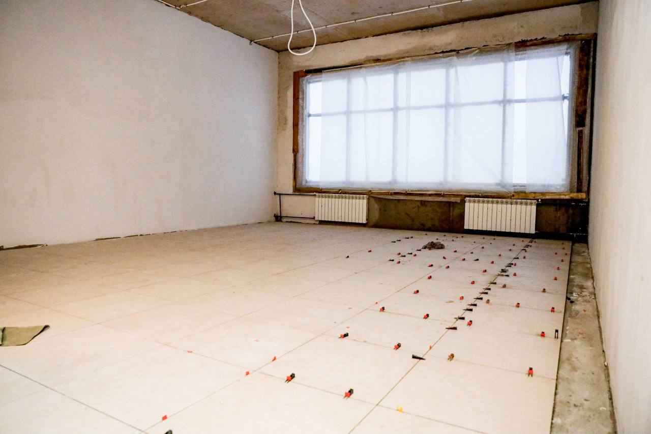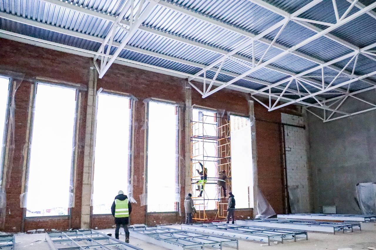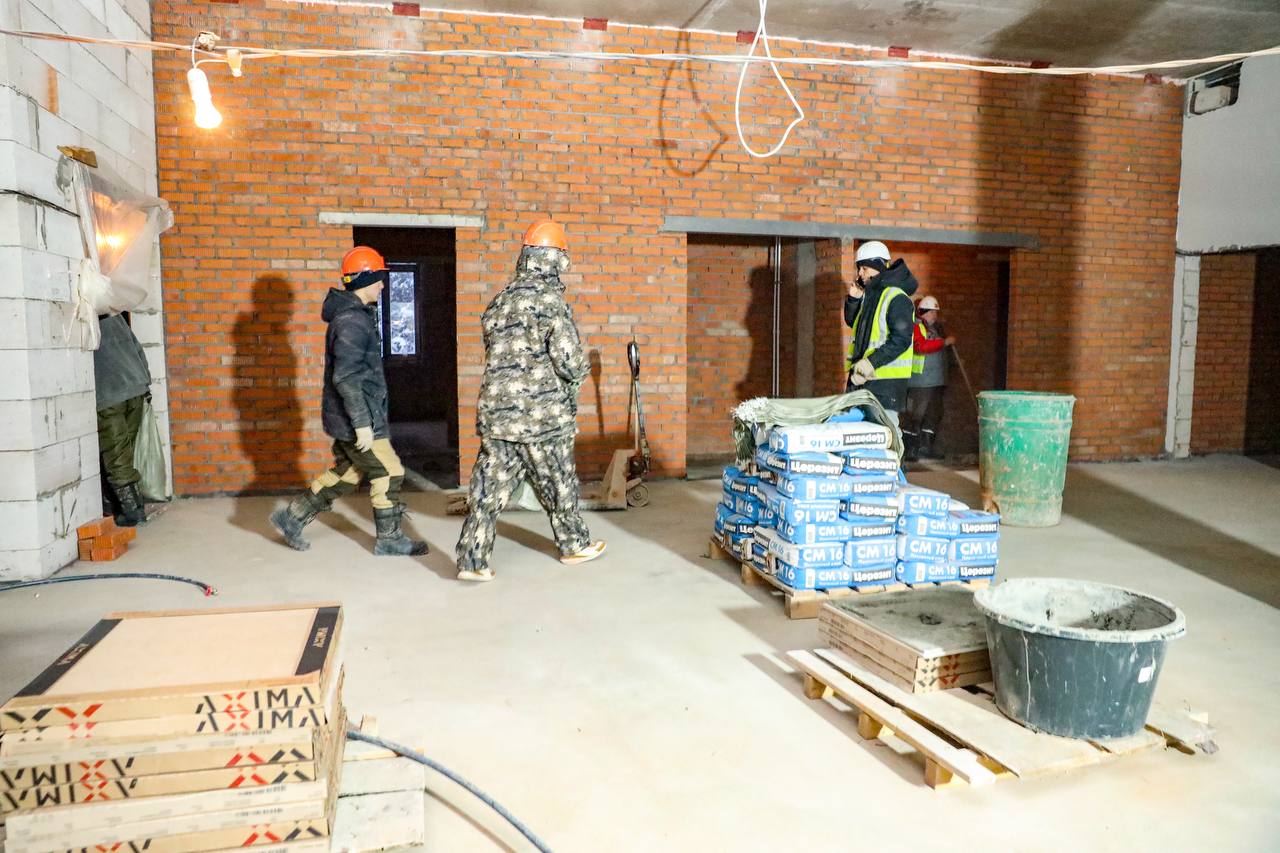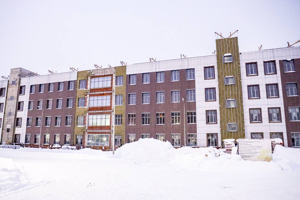 На строительной площадке ведутся утепление и отделка фасада. Внутри здания частично запущено отопление, смонтированы лифты, подготовлены оконные рамы под витражи актового и спортивных залов. Проводятся отделка помещений, монтаж инженерных коммуникаций, укладывается напольная плитка в коридорах.