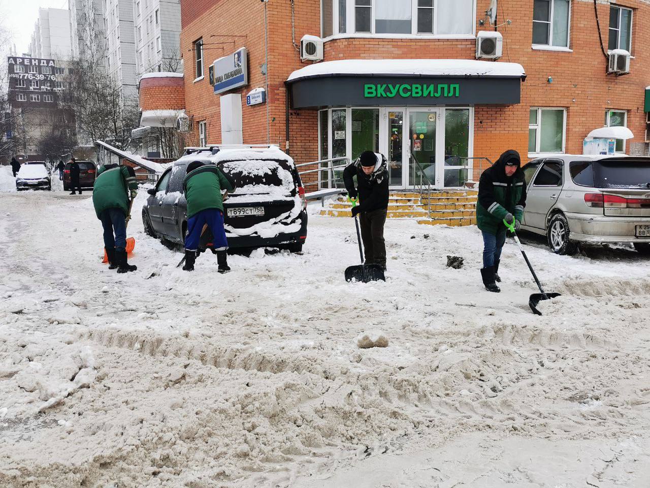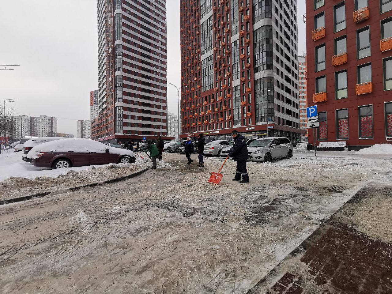 * Снег вывозят на специализированные площадки, дороги и тротуары обрабатывают противогололёдными материалами для безопасности жителей.