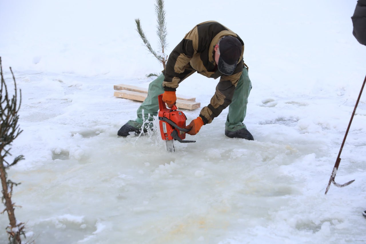 Сегодня в Котово, у храма Спаса Нерукотворного образа (ул. Парковая, д. 1) ведётся подготовка к Крещенским купаниям. Рабочие вырубают во льду залива две иордани – для мужчин и для женщин. Погружения в воду ожидают деревянные площадки с удобными спусками. Рядом ледовые блоки, из которых творческая группа выпилит красивые кресты для купелей и арку для создания праздничной атмосферы. Также здесь будут оборудованы две тёплые раздевалки и палатка с горячим чаем и выпечкой.