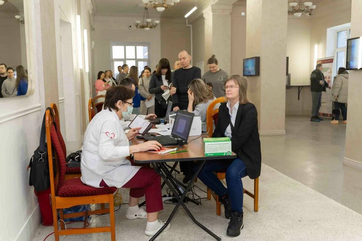 Всем пришедшим провели медицинский осмотр, проверили гемоглобин, отсутствие инфекций и вирусов.