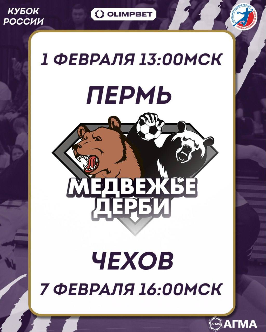Напомним, 29 декабря, в офисе Федерации гандбола России (ФГР) состоялась жеребьёвка 1/4 финала, по результатам которой соперником «Чеховских медведей» стала команда «Пермские медведи». Стали известны даты четвертьфинального «медвежьего дерби»: